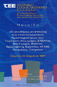 Οι συνθήκες ανάπτυξης των επαγγελματικών δραστηριοτήτων των Τεχνικών στις χώρες Αλβανία, Βουλγαρία, Βοσνία – Ερζεγοβίνη, Κροατία, πΓΔΜ, Ρουμανία, Τουρκία Εσπερίδα, Αθήνα 26.4.2007